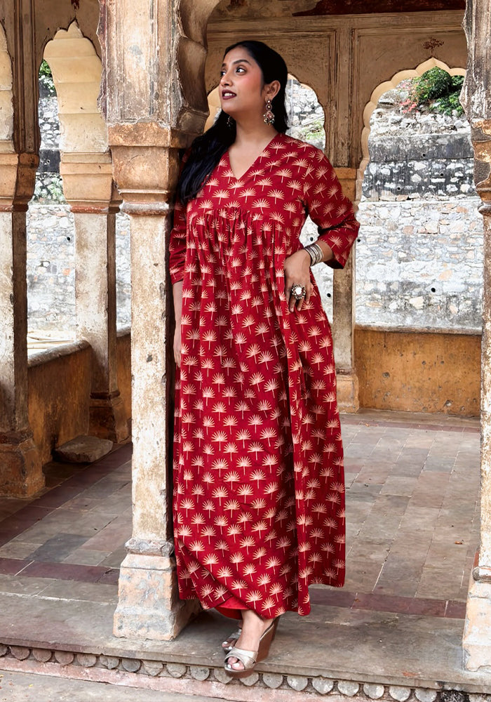 A: Our sustainable clothing uses chemical-free dyes and natural hand blocks crafted from sun-dried sheesham wood, without chemical fixers. To preserve the fabric and prints, we recommend dry cleaning or washing gently in cold water with a mild detergent.